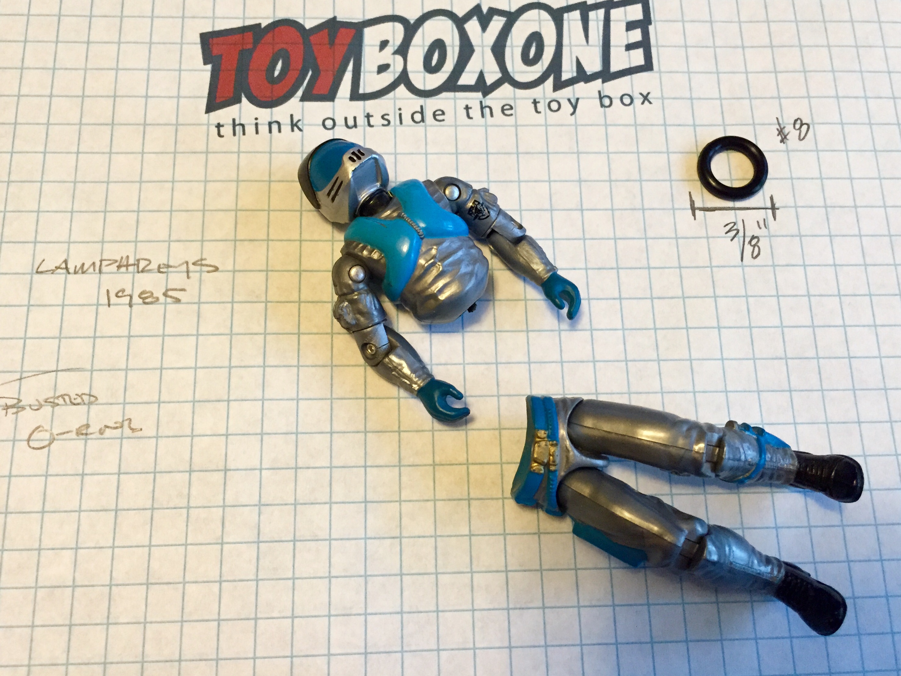 Since most of the figures from the early days are used and abused there is actually a big business in refurbishing them to their glory days. We all know that refurbished isn’t the same as original. But we also know its better than “loose” or “used”. Once of the most common things to break and also easiest to fix is the O-ring in the waist.