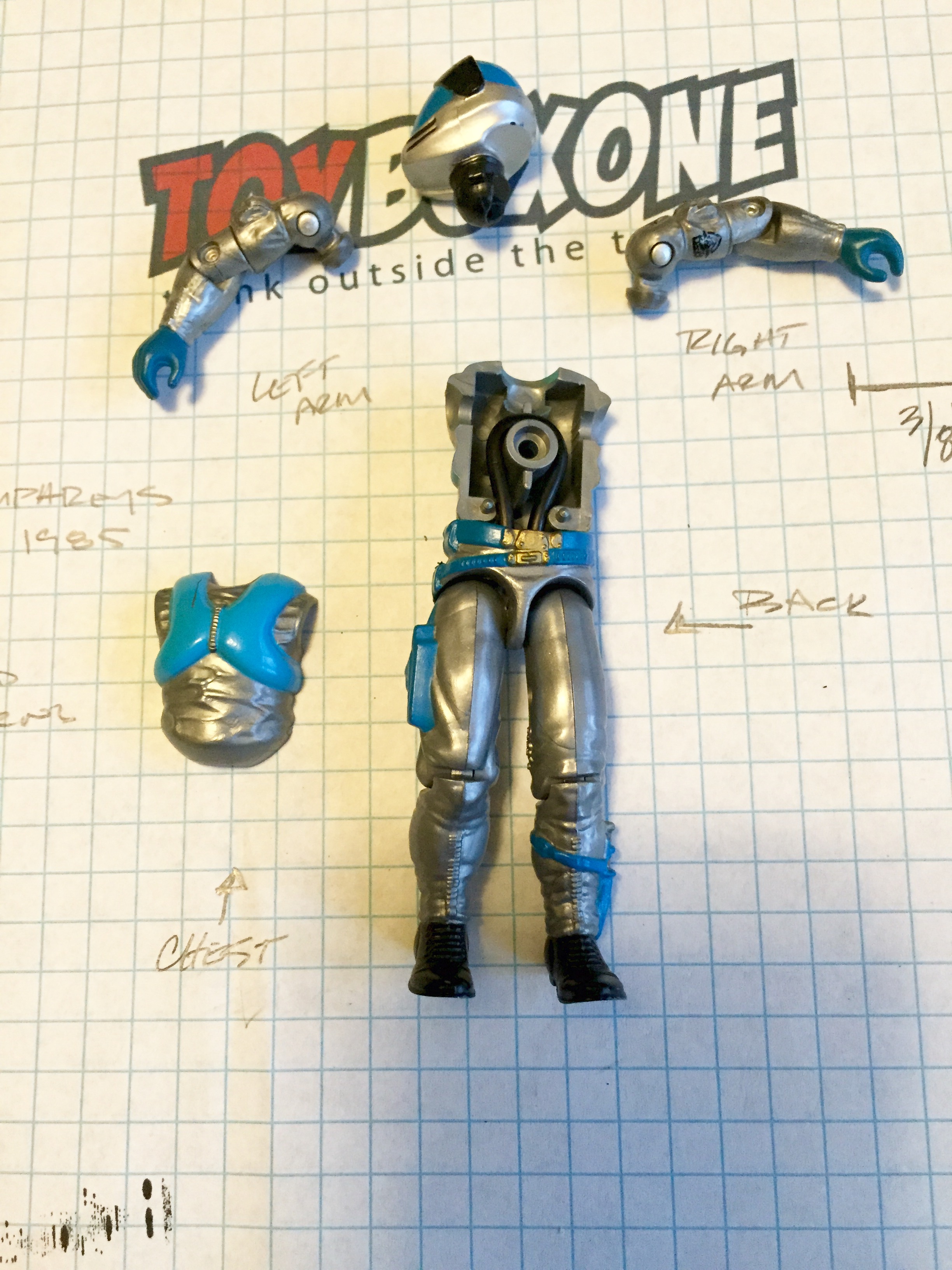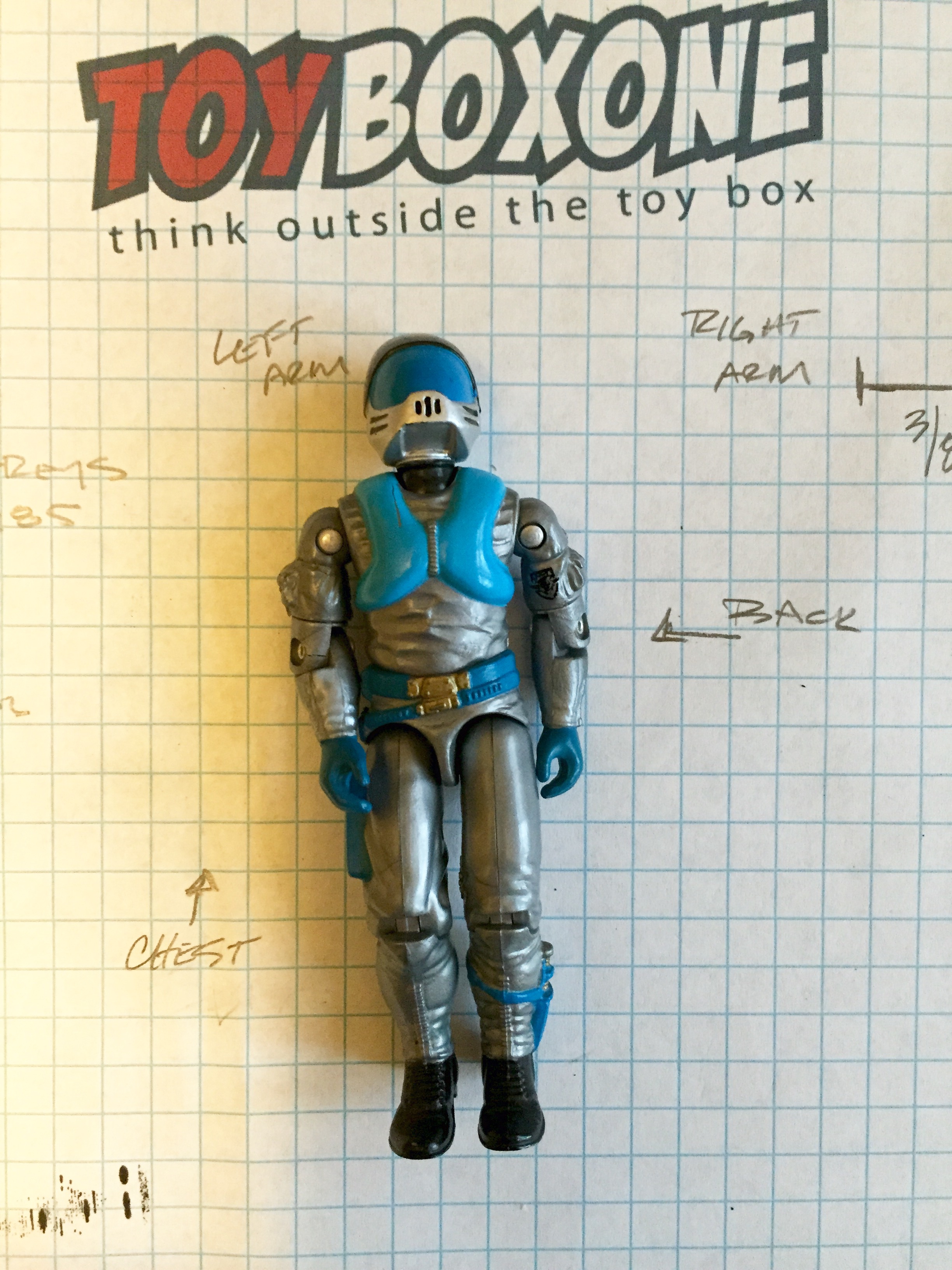 Here we see out combatant, Lamphreys severed in half by Snake-Eyes. Not to worry as this is an easy fix with a quick trip to the hardware store. Now, word on the street is you should use #8 o-rings for figures from 1982-1984 and #9 for 1985-1994. I used a 3/8″ o-ring for this guy, which is a 1984 model and he is a little tight. My next experiment I want to try R134 Automotive O rings. They are made of better material (Hydrogenated Nitrile Butadiene Rubber) than the black rubber ones that will dry out just like the original G.I. Joe ones.