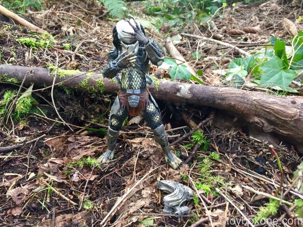 I made my regular Friday trip to Toys R Us on my way home from work on Friday and was pleased to find they still had the Ultimate Jungle Hunter from NECA on the shelf. I was also hoping, but kinda glad I didn’t, to find the new Terminator figure. I can only afford so much NECA in one day. The weather is finally starting to act like spring up here in the Pacific Northwest, so I made it a point to throw him in my pack before my weekend hike.
