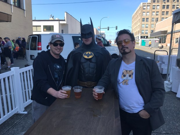 After checking out the street scene we ended up in the popular beer garden. This is where I fulfilled a child hood dream of having a beer with Batman. Of course, Tony Stark couldn’t be left out of a photo op.