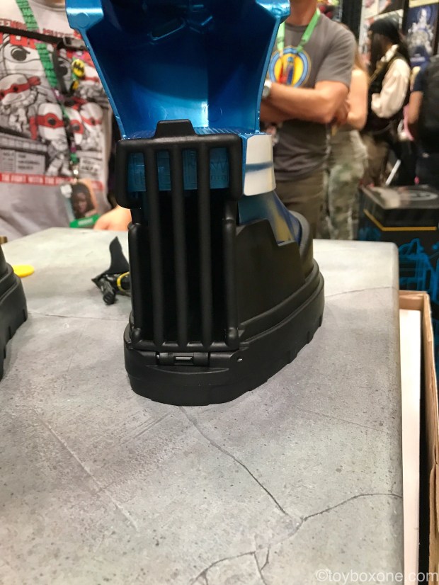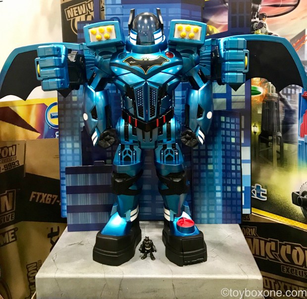 I asked how long something like this takes to go from concept to the final product we were looking at today. They said, for a regular project of this magnitude from start to finish is around 8 to 12 months. This Batbot was a unique case because it was built off the regular Batbot currently on shelves at most big boxes. This is good news for those wanting to grab this play set for their kids. Minus the bad to the bone paint job, awesome packaging, and limited number on the exclusive, they both come with all the same features. To check out all those features in action check out some of the video. (Still working on uploading)