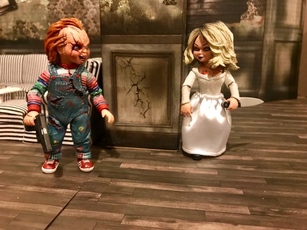 The figures themselves are beautifully done as always. They both stand 4-inches tall and have over 20 points of articulation. For being so small both figures have great detail and very sturdy. For the record, this isn’t just a repack of the previous Chucky. This is an all new figure with awesome details of his near death encounters from the previous installments.
