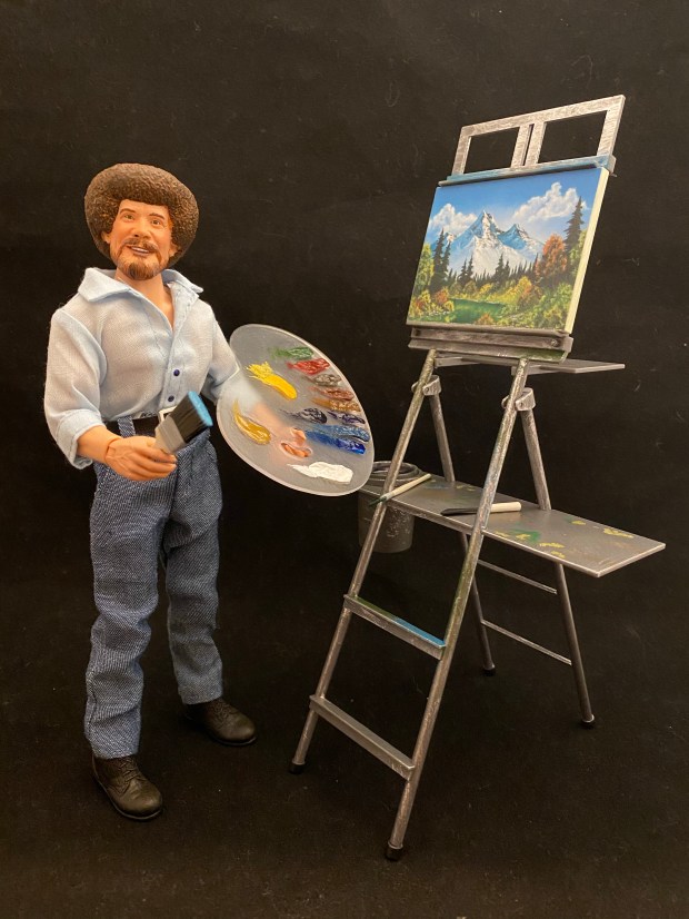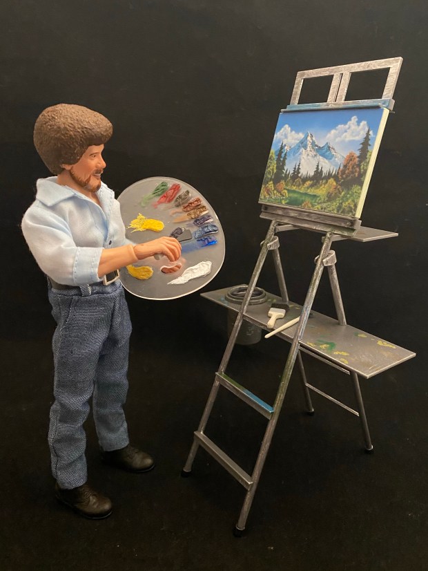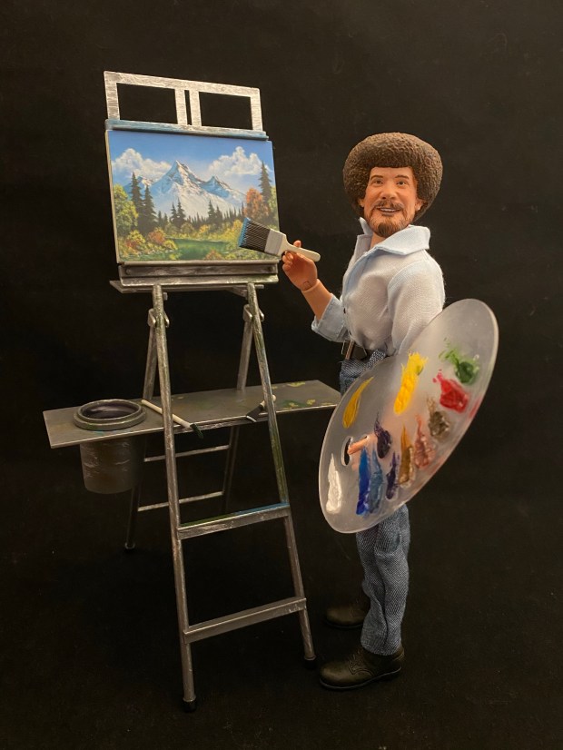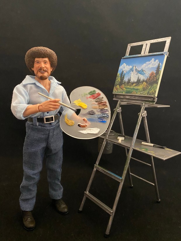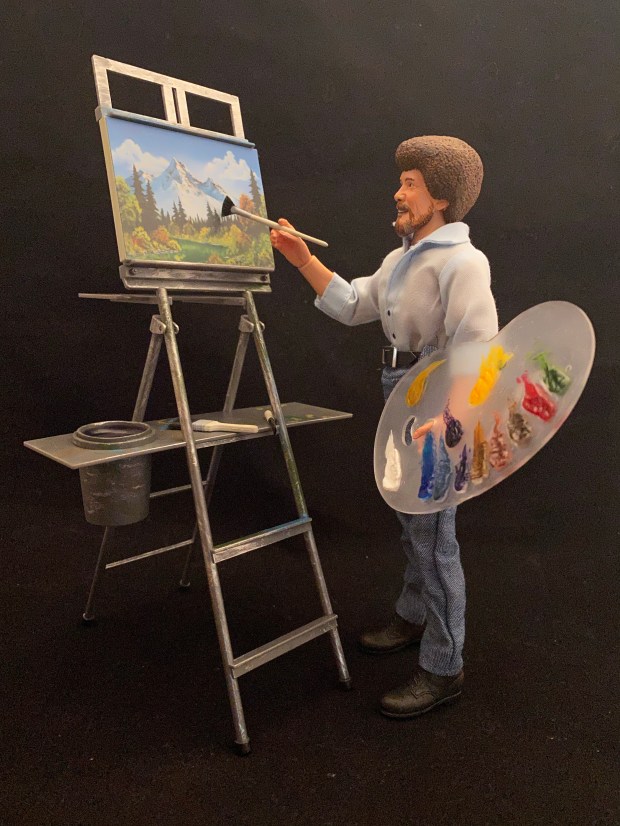 Bob comes dressed in his “timeless look” of jeans and button down shirt. The head sculpt and paint translate his calm demeanor to figure form perfectly. The articulation is good and there is no display stand needed with this one. Not sure the extent of his action poses as he’s always just standing there painting.